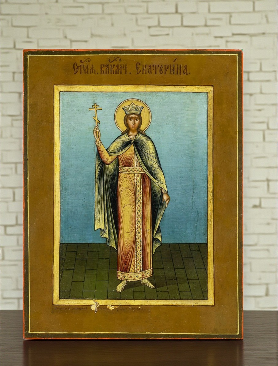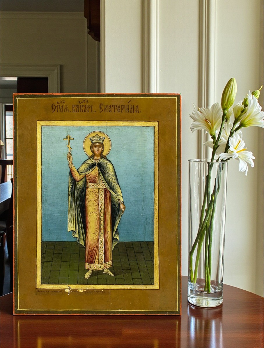 Эта прекрасная икона изображает Святую Великомученицу Екатерину Александрийскую — одну из самых почитаемых святых христианского мира, прославленную своей мудростью, чистотой и непоколебимой верой во Христа.