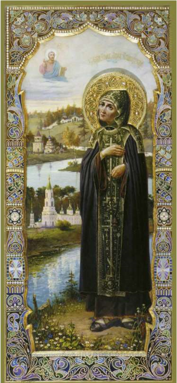 Святая княгиня Анна Кашинская (1280-1368) была дочерью ростовского князя Дмитрия Борисовича и супругой князя Михаила Тверского. После мученической смерти мужа, казненного в Орде ханом Узбеком, она приняла монашество под именем София, затем схиму с именем Анна. Поселилась в г. Кашине в Успенском женском монастыре. В монастыре она прославилась своей добродетельной жизнью. Похоронили ее в Кашинской Успенской церкви. В 1650 г. – канонизирована (возведена в Лик святых).