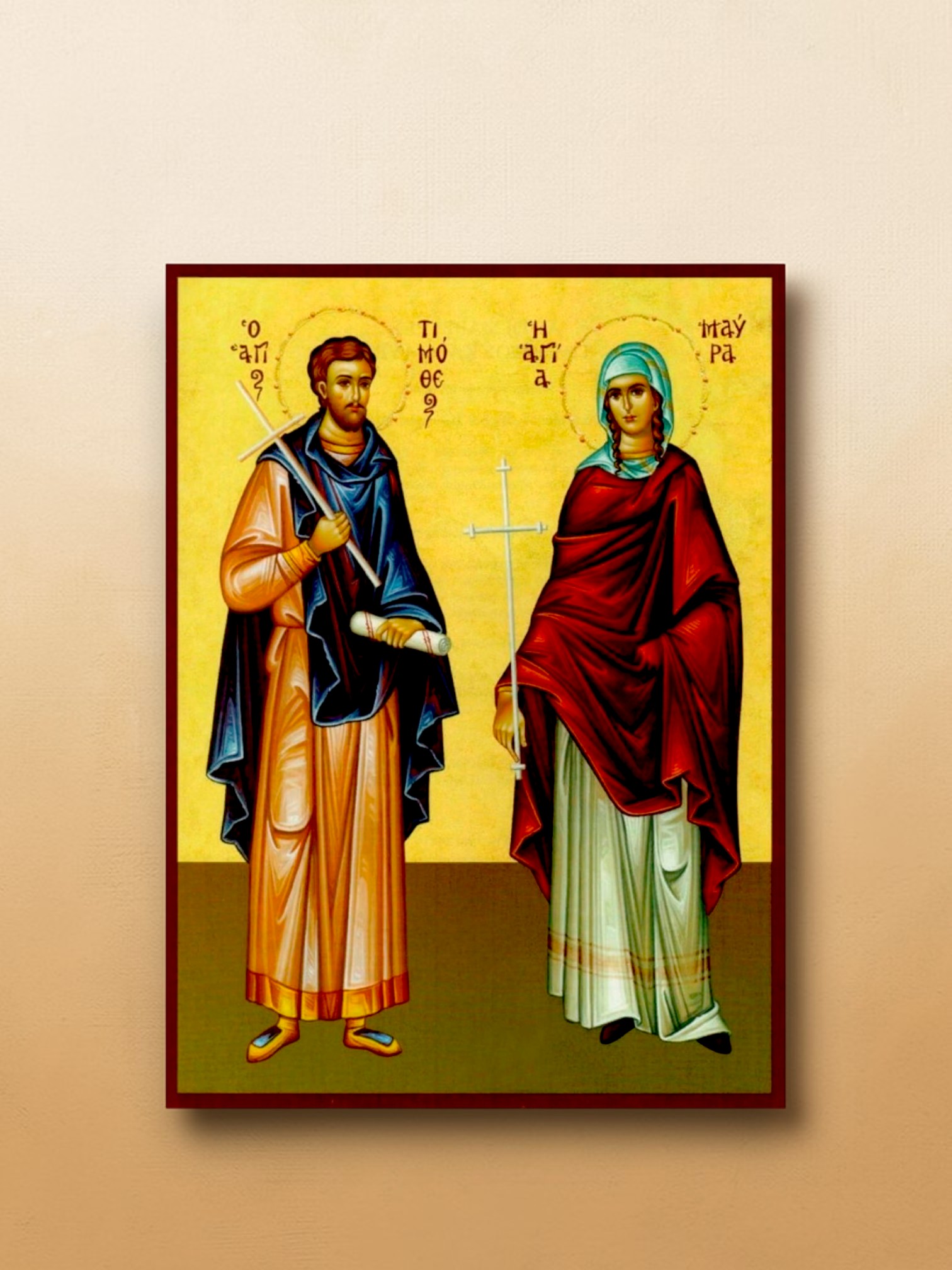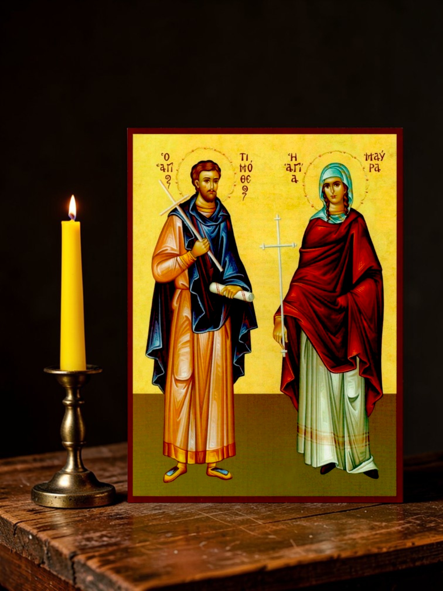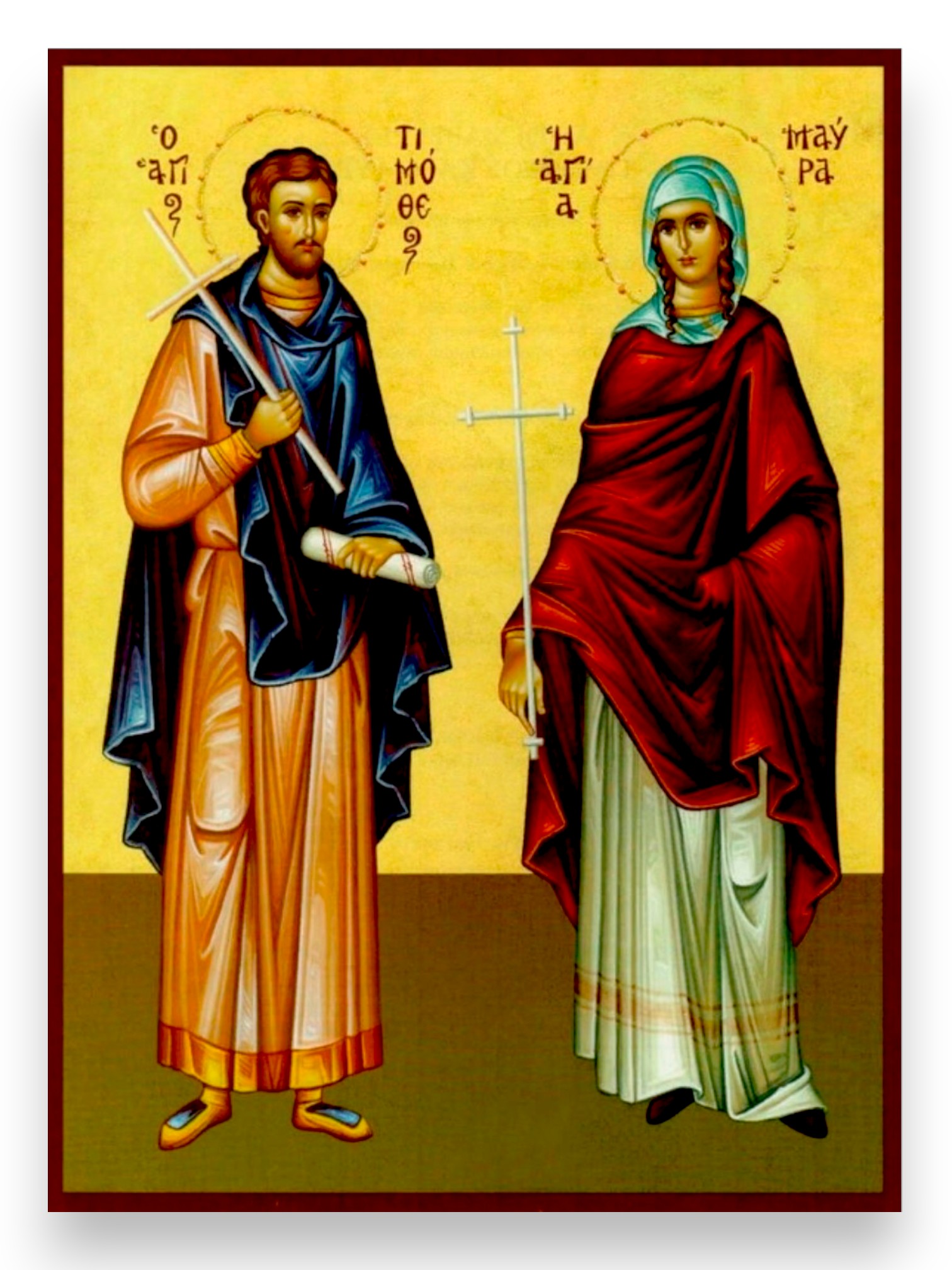 Святые Тимофей и Мавра пострадали за веру во время гонения императора Диоклетиана (284-305 гг.). Тимофей происходил из села Перапеи (Фиваида Египетская) и был сыном священника по имени Пиколпосс. Он служил чтецом в церкви и был доверенным хранителем и переписчиком богослужебных книг — опасное призвание в то время, когда христианам грозила казнь за владение Священным Писанием.