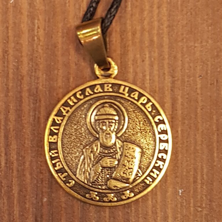 Икона нательная именная святого Благоверного князя Владислава Сербского из бронзы.
