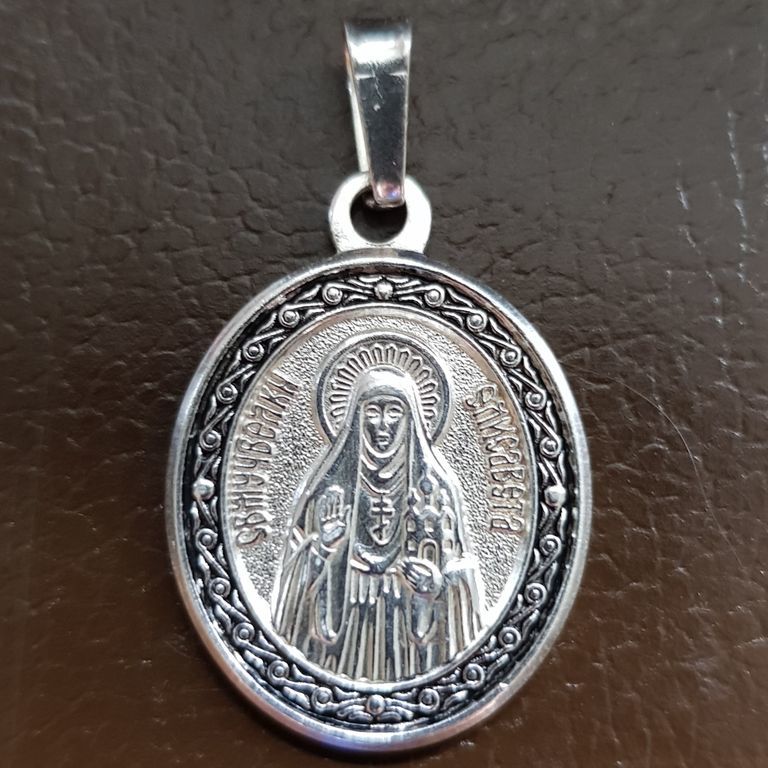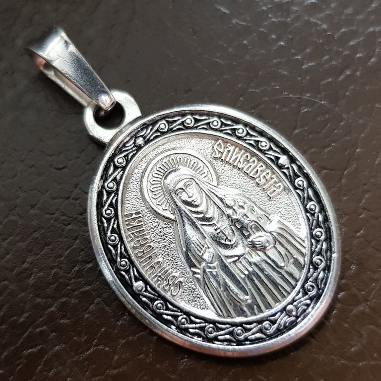 Православная нательная икона со святой Елизаветой — символ духовной поддержки и памяти о своём небесном покровителе. На оборотной стороне размещена молитва. Икона освящена.