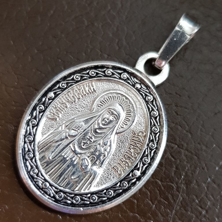 Изготовлена из мельхиора, с покрытием серебром и декоративной эмалью. Подходит для повседневного ношения, не боится влаги. Это не оберег, а икона — возможность обратиться к святой в любое время с молитвой, благодарностью или просьбой.