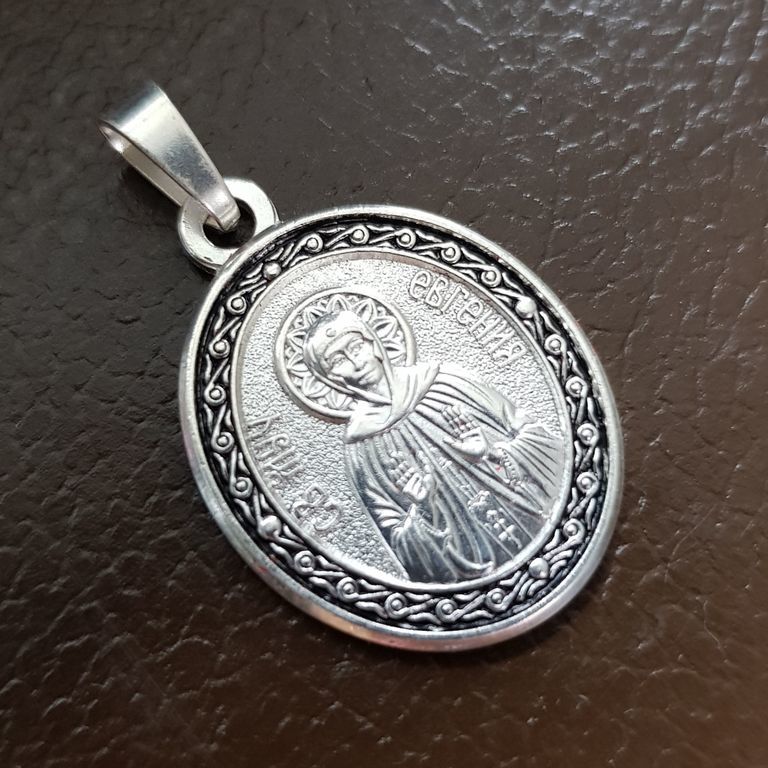 Православная нательная икона со святой Евгенией — символ духовной поддержки и памяти о своём небесном покровителе. На оборотной стороне размещена молитва. Икона освящена.