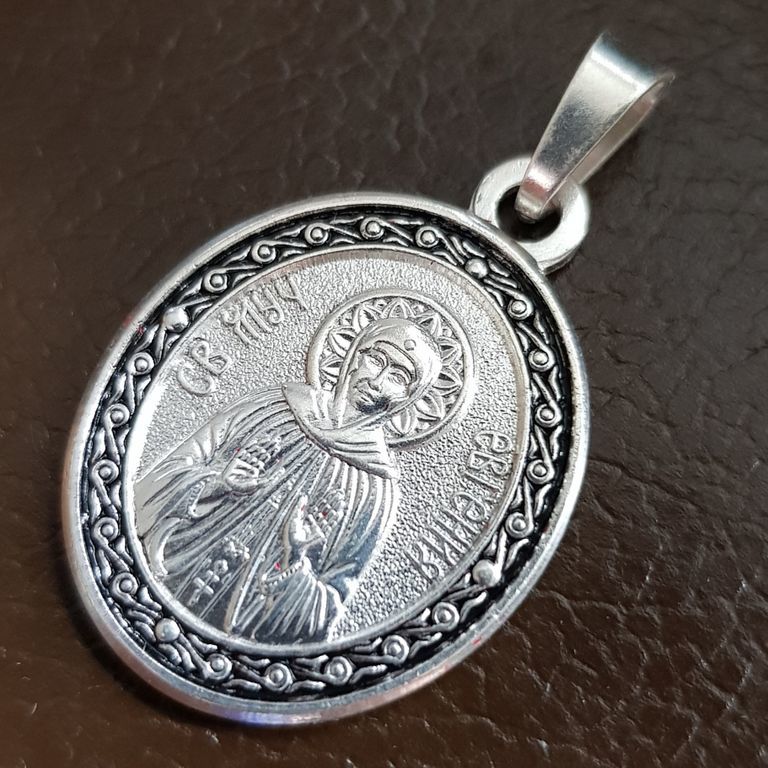 Изготовлена из мельхиора, с покрытием серебром и декоративной эмалью. Подходит для повседневного ношения, не боится влаги. Это не оберег, а икона — возможность обратиться к святой в любое время с молитвой, благодарностью или просьбой.