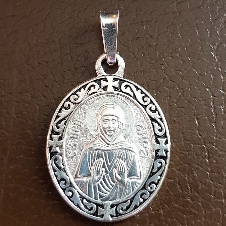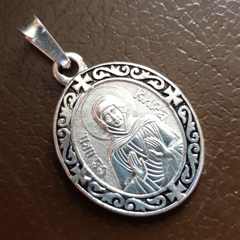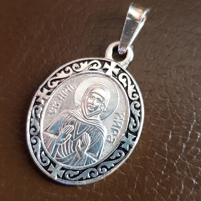 Изготовлена из мельхиора, с покрытием серебром и декоративной эмалью. Подходит для повседневного ношения, не боится влаги. Это не оберег, а икона — возможность обратиться к святой в любое время с молитвой, благодарностью или просьбой.