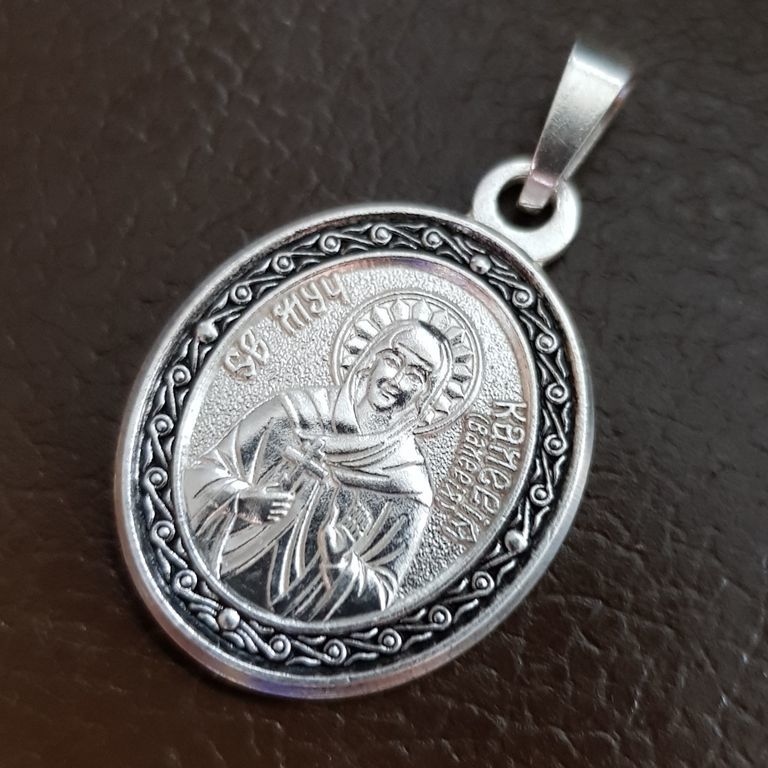 Изготовлена из мельхиора, с покрытием серебром и декоративной эмалью. Подходит для повседневного ношения, не боится влаги. Это не оберег, а икона — возможность обратиться к святой в любое время с молитвой, благодарностью или просьбой.