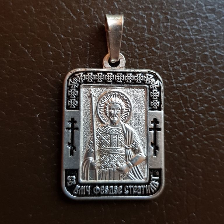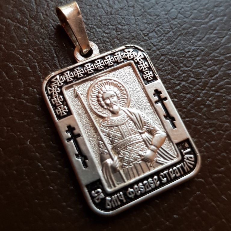 Православная нательная икона со святым Федором — символ духовной поддержки и памяти о своём небесном покровителе. На оборотной стороне размещена молитва. Икона освящена.