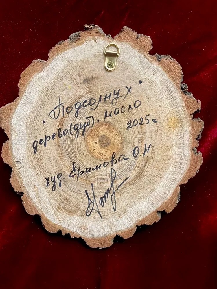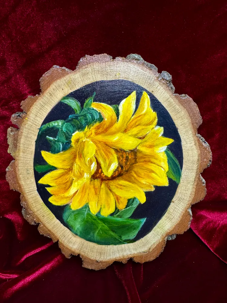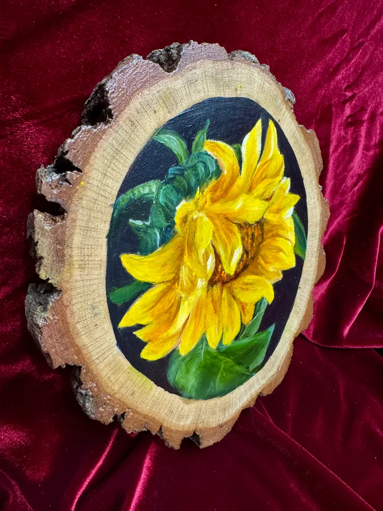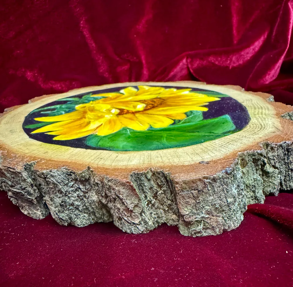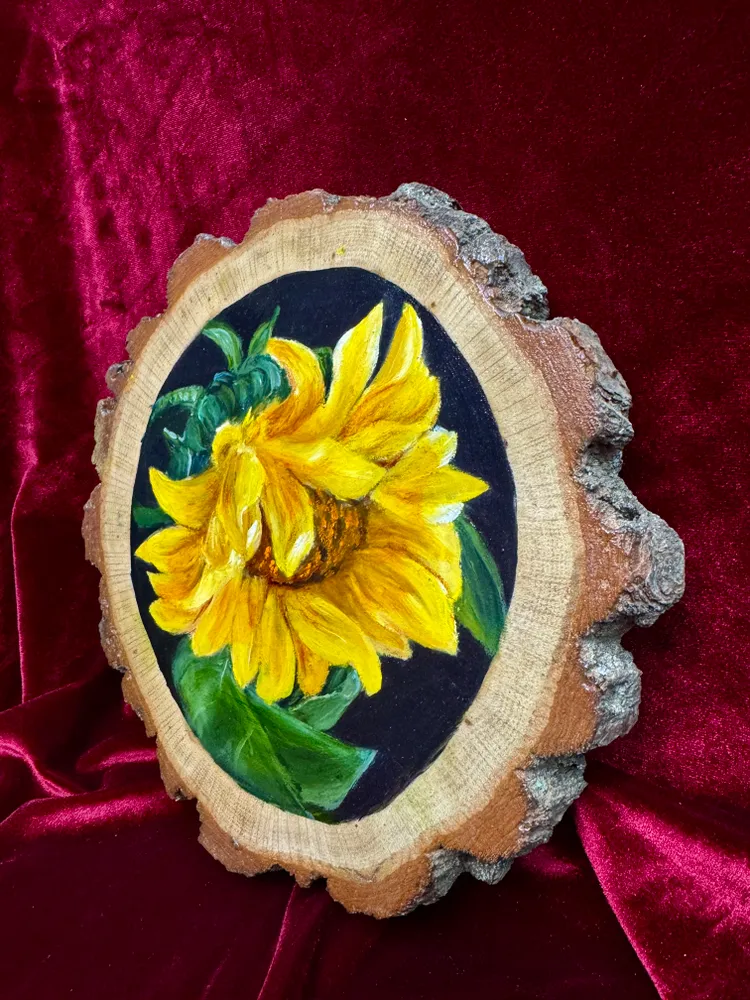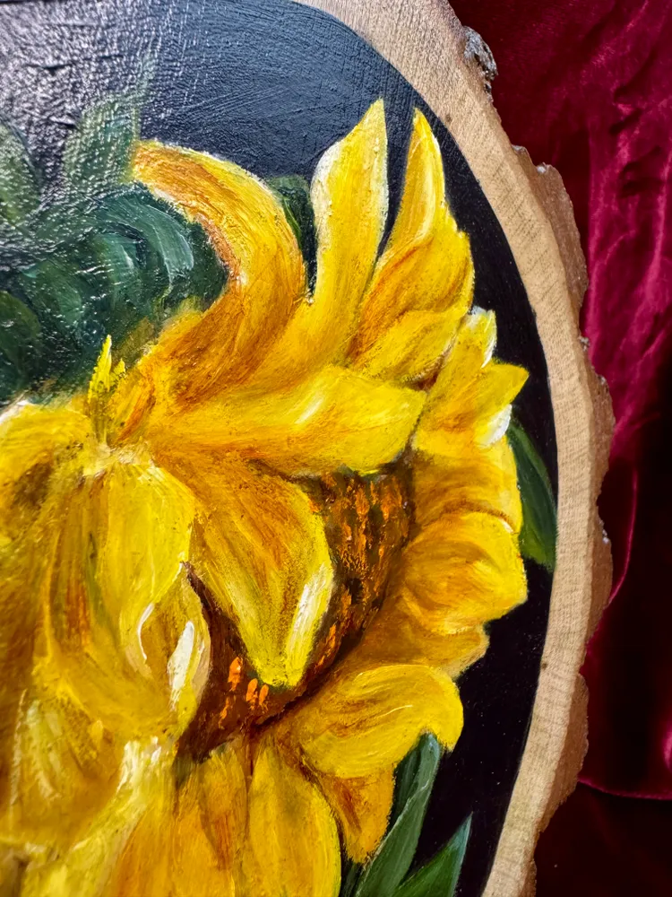 Картина «Подсолнух» на срезе дуба с корой | Автор: Ефимова Ольга