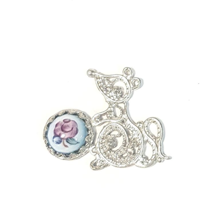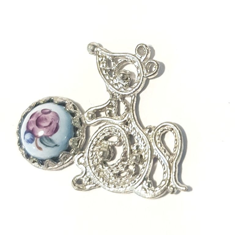Основа - филигрань из мельхиора в серебре, вставки - Ростовская Финифть, роспись по эмали.