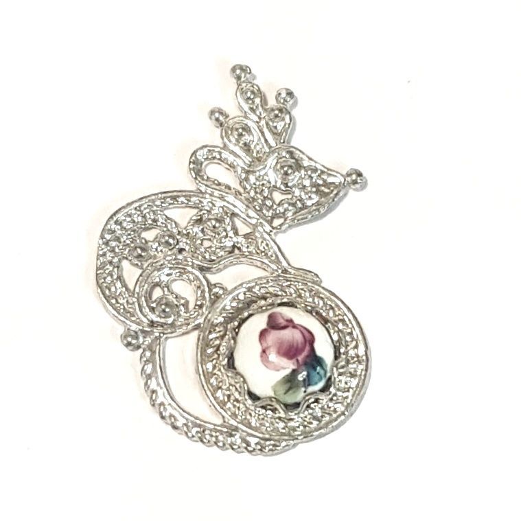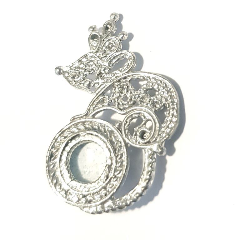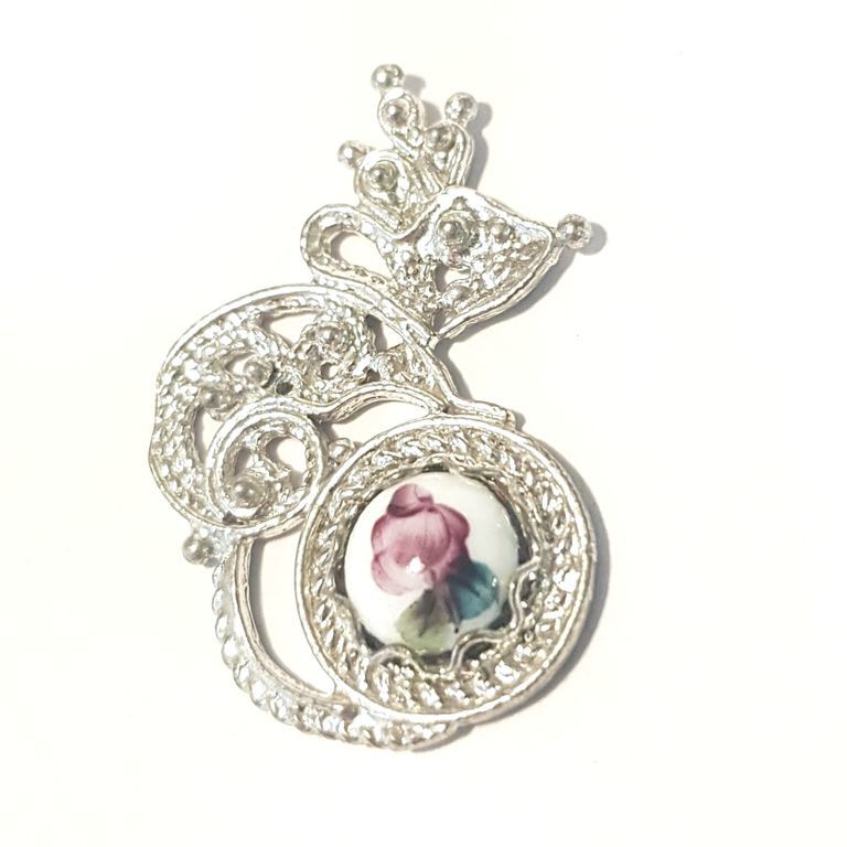 Основа - филигрань из мельхиора в серебре, вставки - Ростовская Финифть, роспись по эмали.