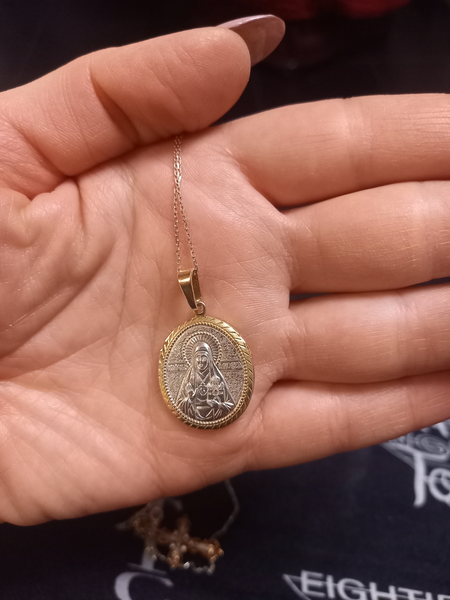 Нательная иконка очень хорошего качества,главное освещена и доставлена в короткие сроки, покупкой доволен всем рекомендую обращаться в Иконный Дом, качество на высоте.